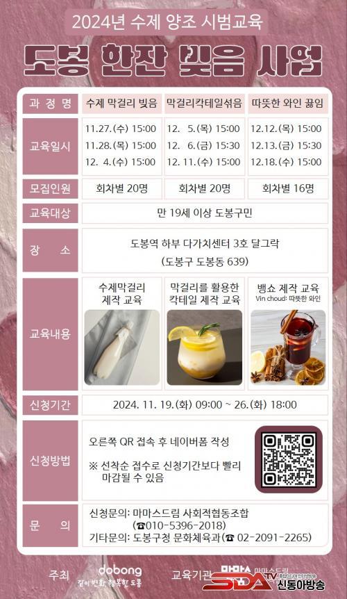 ¼ö¾÷Àº 11¿ù ¸»ºÎÅÍ 12¿ù Áß¼ø±îÁö µµºÀ¿ª ÇϺΠ´Ù°¡Ä¡¼¾ÅÍ 3È£ ´Þ±×¶ô(µµºÀ±¸ µµºÀµ¿ 639)¿¡¼ ÁøÇàµÈ´Ù.