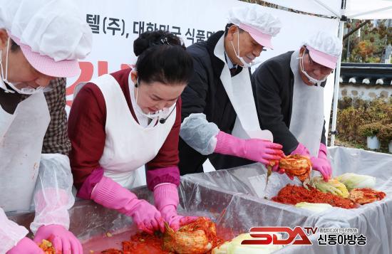 ƯÈ÷, À̳¯ Çà»ç¿¡¼´Â À¯Á¤ÀÓ ¸íÀÎÀÌ ±èÀå±èÄ¡ ´ã±×´Â °úÁ¤À» ½Ã¿¬Çϰí, ÆÄ¸£³ª½ºÈ£ÅÚ ÀÓÁ÷¿ø, ÀÚ¿øºÀ»çÀÚ µî 40¸íÀÌ Âü¿©ÇØ ¸íÀÎÀÇ ±èÀå±èÄ¡ Á¦ÀÛ °úÁ¤À» üÇèÇß´Ù. À̸¦ ÅëÇØ ÀüÅëÀ½½ÄÀÎ ±èÄ¡ÀÇ ¼ÒÁßÇÔÀ» ¹è¿ì°í, ¾î·Á¿î ÀÌ¿ô¿¡°Ô Àü´ÞµÈ ±èÄ¡°¡ ¸¸µé¾îÁø Á¤¼º ¾î¸° °úÁ¤À» üÇèÇÏ¸ç ³ª´®ÀÇ Àǹ̸¦ ´õÇß´Ù.