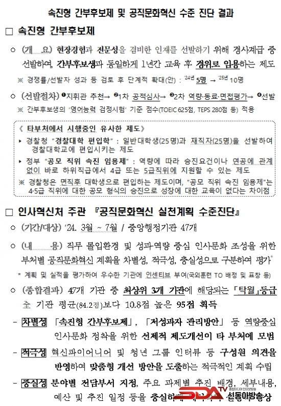 ÇØ¾ç°æÂûûÀÇ ÀλçÁ¦µµ °³¼±Àº ÀλçÇõ½Åó ÁÖ°ü ¡º°øÁ÷¹®ÈÇõ½Å ½Çõ°èȹ ¼öÁØÁø´Ü*¡»¿¡¼ ¡®Å¹¿ù¡¯ÇÏ´Ù´Â Æò°¡¿Í ÇÔ²² µ¶¸³ ¿Üû Áß ÃÖ¿ì¼ö±â°üÀ¸·Î ¼±Á¤µÇ¾ú´Ù. ÀÌ ¼öÁØÁø´ÜÀº Á¤ºÎÀÇ ÀλçÁ¤Ã¥À» ÃѰýÇÏ´Â ÀλçÇõ½Åó¿¡¼ ÀϰüµÈ ÀλçÁ¤Ã¥À» ½ÇÇöÇϱâ À§ÇØ ½Ç½ÃÇÏ´Â °ÍÀ¸·Î, ¸Å³â 47°³ Áß¾ÓÇàÁ¤±â°üÀÇ ÀλçÇõ½Å °èȹÀ» Á¦Ãâ¹Þ¾Æ Æò°¡ÇÑ´Ù.