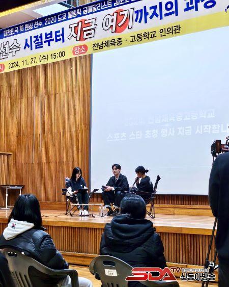 [½Åµ¿¾Æ¹æ¼Û Àü³²¹«¾È=À̽ŵ¿±âÀÚ] Àü³²Ã¼À°Áß¡¤°íµîÇб³´Â Áö³­ 11¿ù 27ÀÏ(¼ö) º»±³ ÀÎÀǰü¿¡¼­ Ææ½Ì »çºê¸£ Á¾¸ñÀÇ ±èÁØÈ£ ¼±¼ö¸¦ ÃÊÃ»ÇØ °­¿¬À» °³ÃÖÇß´Ù. ±èÁØÈ£ ¼±¼ö´Â 2020 µµÄì¿Ã¸²ÇÈ ±Ý¸Þ´Þ¸®½ºÆ®ÀÌÀÚ 2024 ÆÄ¸®¿Ã¸²ÇÈ ÇØ¼³À§¿øÀ¸·Î Ȱµ¿Çß´ø ½ºÆ÷Ã÷ ½ºÅ¸·Î, À̹ø ¡°Çлý¼±¼ö ½ÃÀýºÎÅÍ Áö±Ý ¿©±â±îÁöÀÇ °úÁ¤¡± ÁÖÁ¦ÀÇ °­¿¬À» ÅëÇØ ÀÚ½ÅÀÇ Áø¼ÖÇÑ °æÇè°ú Á¶¾ðÀ» Çлýµé¿¡°Ô ÀüÇß´Ù.