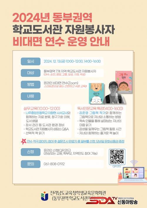 [½Åµ¿¾Æ¹æ¼Û Àü³²=À̽ŵ¿±âÀÚ] Àü¶ó³²µµ±³À°Ã»Çлý±³À°¹®È­È¸°üÀº ¿À´Â 12¿ù 13ÀÏ, µ¿ºÎ±Ç¿ª 7°³ Áö¿ª(¿©¼ö, ¼øÃµ, ±¤¾ç, °íÈï, º¸¼º, ±¸·Ê, °î¼º) Çб³µµ¼­°ü ÀÚ¿øºÀ»çÀÚ¸¦ ´ë»óÀ¸·Î ºñ´ë¸é ¿¬¼ö¸¦ ¿î¿µÇÑ´Ù.