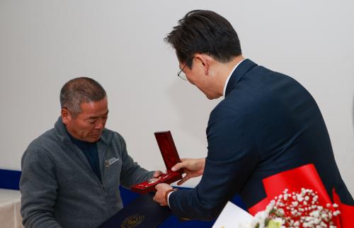 À̳¯ Àü¼ö½Ä¿¡¼­ È­¶û¹«°øÈÆÀåÀº, ÀÓ ÀϺ´ÀÇ Á¶Ä«ÀÎ Çлê¸é Áö¼Ò¸¶À»ÀÇ Àӱ⼮ ¾¾¿¡°Ô Àü¼öµÆ´Ù.