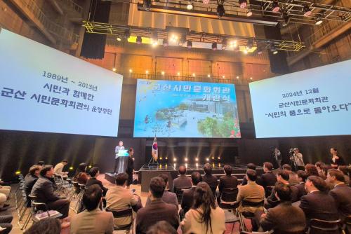 À̹ø °³°ü½ÄÀº ¿À·£ ±â°£ ¹æÄ¡µÇ¾ú´ø ±º»ê½Ã¹Î¹®Èȸ°üÀÌ ½Ã¹Î Âü¿©Çü ¹®È¿¹¼ú°ø°£À¸·Î »õ·Ó°Ô ÅÂ¾î³ °ÍÀ» ±â³äÇϸç, Áö¿ª Áֹΰú Çà¾È¾ÈÀüºÎ ±è¹ÎÀç Â÷°üº¸¸¦ ºñ·ÔÇÑ °ü°èÀÚµéÀÌ ÇÔ²² ÃàÇÏÇÏ´Â ÀÚ¸®·Î ¸¶·ÃµÆ´Ù.