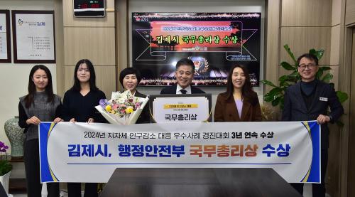 [½Åµ¿¾Æ¹æ¼Û=Á¶Á¾Çö±âÀÚ] ±èÁ¦½Ã(½ÃÀå Á¤¼ºÁÖ)°¡ Áö³­ 10ÀÏ¡®2024³â ÇàÁ¤¾ÈÀüºÎ ÁÖ°ü Àα¸°¨¼Ò ´ëÀÀ ¿ì¼ö»ç·Ê °æÁø´ëȸ¡¯¿¡¼­ ±¹¹«ÃѸ®»óÀ» ¼ö»óÇß´Ù. ÀÌ´Â ±èÁ¦½Ã°¡ 3³â ¿¬¼Ó ¼ö»óÇÑ ¼º°ú·Î ÁÖ¸ñ¹Þ°í ÀÖ´Ù.
