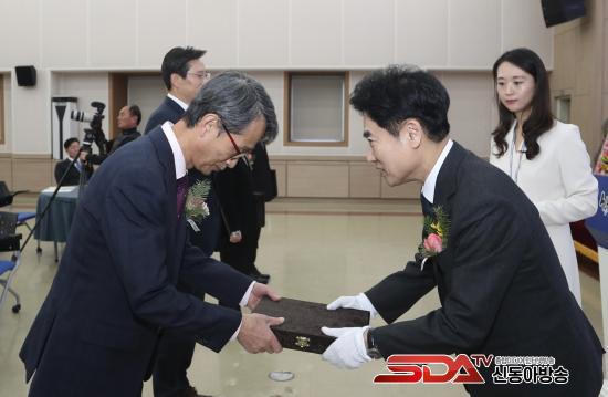 ±è´ëÁß Àü³²±³À°°¨(¿À¸¥ÂÊ)ÀÌ ÇѰæÈ£ Àü³²±³À°Ã»±³À°¿¬¼ö¿øÀå(¿ÞÂÊ)¿¡°Ô Àü³²±³À°»óÀ» ¼ö¿©Çϰí ÀÖ´Ù.