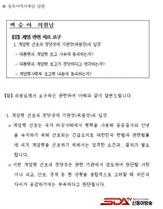 ±¹»çÆíÂùÀ§¿øÈ¸¡¤µ¿ºÏ¾Æ¿ª»çÀç´Ü, 12.3 °è¾ö »çÅ Á¤´ç¼º ¹¯´Â ÁúÀÇ¿¡ ´äº¯ ȸÇÇ