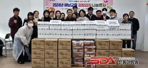 ¿ÃÇØ·Î 3³â° ½Ç½ÃÇϰí ÀÖ´Â ÇØ³²±³À°Áö¿øÃ» »ç¶ûÀÇ ±èÀå ±èÄ¡ ³ª´® ÇѸ¶´çÀº Ãä°í ÁÁÁö ¾ÊÀº ±â»ó ¿©°Ç¿¡µµ ºÒ±¸ÇÏ°í ¸¹Àº Á÷¿øÀÌ Âü¿©ÇÏ¿´´Ù. °í¹«Àå°©°ú ¾ÕÄ¡¸¶, ¸ðÀÚ¸¦ ¾²°í Á¤¼ºÀ» ´ã¾Æ °®Àº ¾ç³äÀ» ¹ö¹«·Á ¸ÀÀÖ°Ô ´ã±Ù »ç¶ûÀÇ ±èÄ¡´Â ¾î·Á¿î ÇüÆí¿¡ ÀÖ´Â ¿ì¸® ¾ÆÀ̵鿡°Ô Àü´ÞµÇ¾î µû¶æÇÑ »ç¶û°ú Á¤À» ³ª´©´Â ¿¬¸»¿¬½Ã ¼±¹°ÀÌ µÇ¾ú´Ù.