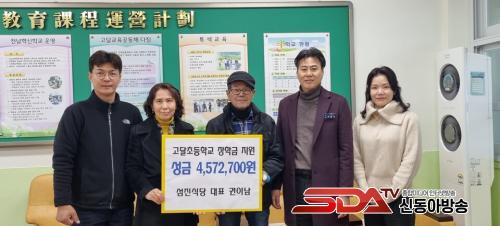 °í´ÞÃʵîÇб³¸¦ Á¹¾÷ÇÑ ¼±¹èÀÌÀÚ °í´Þ¸é¿¡ »ì°í ÀÖ´Â ¼±¹è°¡ ÈĹèµéÀ» À§ÇØ 2³â ¿¬¼Ó ÀåÇбÝÀ» ±âºÎÇÑ °ÍÀÌ´Ù. ±× ÁÖÀΰøÀº ¹Ù·Î °î¼º±º °í´Þ¸é ¼¶Áø½Ä´ç ±ÇÀ̳² ´ëÇ¥(°í´ÞÃÊ Á¦33ȸ Á¹¾÷)ÀÌ´Ù. ±ÇÀ̳² ´ëÇ¥´Â ÀÏ ³â µ¿¾È ÆÄÁö³ª °íö µîÀ» Á¤¸®ÇÑ ¼öÀÍ±Ý 4,572,700¿øÀ» ¸ð±³·Î ¹æ¹®ÇÏ¿© ÀåÇбÝÀ¸·Î Àü´ÞÇß´Ù.
