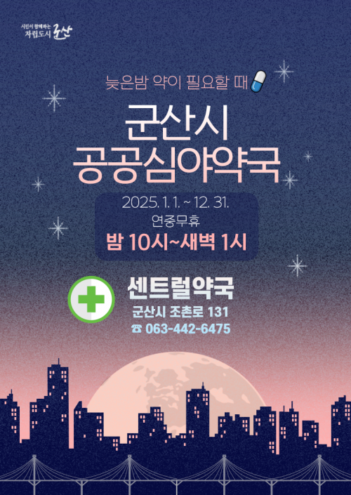 °ø°ø½É¾ß¾à±¹Àº ¿ÀÈÄ 10½ÃºÎÅÍ ´ÙÀ½³¯ »õº® 1½Ã±îÁö 365ÀÏ(¿¬Áß¹«ÈÞ) ¿î¿µµÇ´Â ¾à±¹ÀÌ´Ù. À̸¦ ÅëÇØ ½Ã¹ÎµéÀÌ ½É¾ß½Ã°£´ë¿¡ ÀǾàǰÀ» ±¸¸ÅÇÒ ¼ö ÀÖÀ¸¸ç, ¾à»ç¿ÍÀÇ »ó´ãÀ» ÅëÇØ ¾ÈÀüÇÏ°Ô ¾àÀ» º¹¿ëÇÒ ±âȸ°¡ Á¦°øµÈ´Ù.