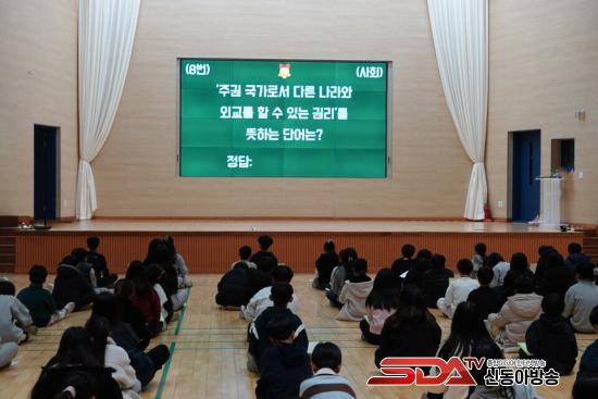 °ñµçº§ ÁøÇàÀº ¡Û, ¡¿¿Í ÁÖ°ü½ÄÀ¸·Î ±¸¼ºµÈ ¹®Ç×À» ÄûÁî Çü½ÄÀ¸·Î Á¦½ÃÇÏ¿´À¸¸ç, ´ã´ç ±³»ç¿Í °¢ ÇгâÀÇ ´ãÀÓ ±³»çµéÀÌ ÁøÇà ¹× °¨µ¶À» ¸Ã¾Ò´Ù. Âü°¡ÇÑ ÇлýµéÀº °´ç ¸ð¿© ´ëÇü ȸ鿡 Á¦½ÃµÇ´Â ¹®Ç×À» º¸°í, ÈÀÌÆ®º¸µå¿¡ ´äÀ» Àû¾î ¸ÂÃèÀ» ¶§ µé¾î º¸ÀÌ¸é¼ Áñ°Ì°Ô Âü¿©ÇÏ¿´´Ù. ¾Æ½±°Ô Áß°£¿¡ Å»¶ôÇÑ ÇлýµéÀº ÆÐÀÚ ºÎȰÀüÀ» ÅëÇØ ÀçµµÀüÀÇ ±âȸ¸¦ ¾ò°í ÀÇ¿åÀ» Èû²¯ ³»º¸À̱⵵ ÇÏ¿´´Ù. ÀÌÈÄ¿¡ Å»¶ôÇÑ ÇлýµéÀº ÇÐ±Þ Ä£±¸µéÀ» ÀÀ¿øÇÏ¸ç °´çÀº ÁøÁöÇÔ°ú ¾Æ½¬¿ò ±×¸®°í ȯȣ ¼Ò¸®°¡ °¡µæÇÑ ÃàÁ¦ÀÇ ÀåÀ̱⵵ ÇÏ¿´´Ù.