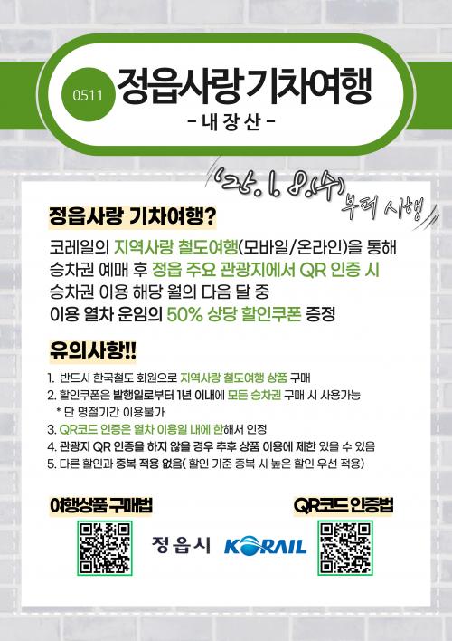 ÇÒÀÎ ÇýÅÃÀ» ¹Þ´Â ¹æ¹ýÀº °£´ÜÇÏ´Ù. ÄÚ·¹ÀÏ È¸¿øÀ¸·Î °¡ÀÔÇÑ ÈÄ ¡ãÄÚ·¹ÀÏÅå ¾Û ¶Ç´Â ·¹Ã÷ÄÚ·¹ÀÏ À¥»çÀÌÆ®¿¡¼ ¡®Áö¿ª»ç¶û öµµ¿©Ç࡯ Ä«Å×°í¸®¸¦ ¼±ÅÃÇØ 10% ÇÒÀÎµÈ °¡°ÝÀ¸·Î Á¤À¾ ¿Õº¹ ½ÂÂ÷±Ç(´çÀÏ/1¹Ú 2ÀÏ/2¹Ú 3ÀÏ)À» ±¸¸ÅÇÏ°í ¡ãÁ¤À¾ÀÇ ÀÎÁõ °ü±¤Áö Áß ÇÑ °÷ ÀÌ»óÀ» ¹æ¹®ÇØ QR Äڵ带 ÀÎÁõÇÏ¸é µÈ´Ù. ÀÌÈÄ ±¸¸Å ¿îÀÓÀÇ 40% »ó´ç ÇÒÀÎ ÄíÆùÀ» ´ÙÀ½ ´Þ¿¡ Á¦°ø¹ÞÀ» ¼ö ÀÖ´Ù. ÀÌ ÄíÆùÀº ¹ßÇàÀϷκÎÅÍ 1³â µ¿¾È KTX¸¦ Æ÷ÇÔÇÑ ¸ðµç ¿Â÷¿¡¼ »ç¿ëÇÒ ¼ö ÀÖ´Ù.
