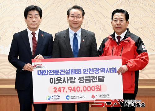 [½Åµ¿¾Æ¹æ¼Û ÀÎõ= À±¹Î½Ä±âÀÚ] ÀÎõ±¤¿ª½Ã(½ÃÀå À¯Á¤º¹)´Â ´ëÇÑÀü¹®°Ç¼³Çùȸ ÀÎõ±¤¿ª½Ãȸ(ȸÀå Á¶Èï¼ö)°¡ ¿¬¸»À» ¸Â¾Æ ºÒ¿ìÀÌ¿ôµ½±â ¼º±Ý 2¾ï 4,794¸¸ ¿øÀ» ÀÎõ»çȸº¹Áö°øµ¿¸ð±Ýȸ¿¡ ±âŹÇß´Ù°í ¹àÇû´Ù.