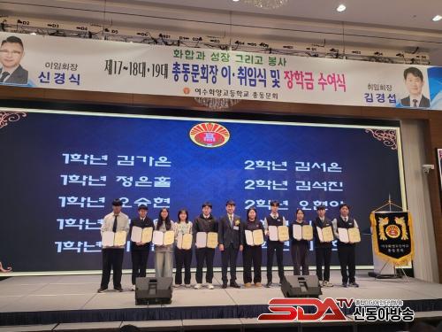 ƯÈ÷ 2025³â 1¿ù 10ÀÏ ¿©¼öÈ­¾ç°íµîÇб³ Ãѵ¿¹®È¸Àå ÀÌ¡¤ÃëÀӽĿ¡¼­´Â 1, 2Çгâ ÀçÇлý Áß ¼±¹ßµÈ 10¸í¿¡°Ô °¢ 100¸¸ ¿ø¾¿, ÃÑ 1,000¸¸ ¿øÀÇ ÀåÇбÝÀ» ¼ö¿©ÇÏ¿© ÈĹèµé¿¡°Ô ½ÇÁúÀûÀÎ µµ¿ò°ú µû¶æÇÑ °Ý·Á¸¦ ÀüÇÏ¿´´Ù.