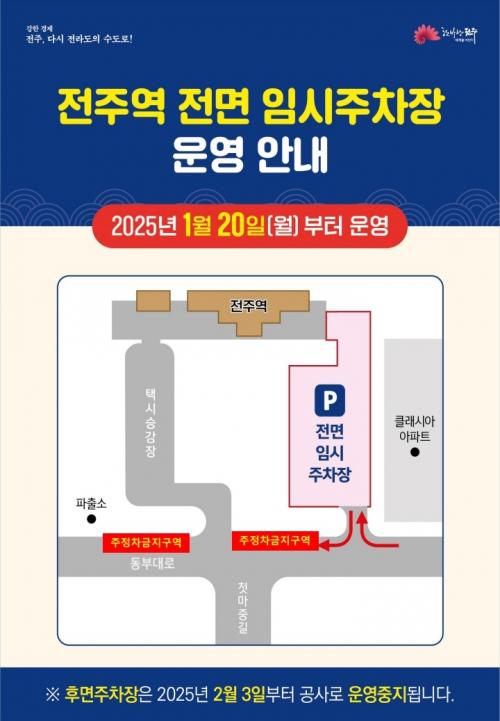 ÇÑÆí ½Ã´Â ÇöÀç ¿î¿µ ÁßÀÎ ÀüÁÖ¿ª µÚÆí(ÀåÀ縶À») Èĸé ÀÓ½ÃÁÖÂ÷Àå¿¡ ´ëÇØ¼´Â ÁÖÂ÷Ÿ¿ö Á¶¼º °ø»ç¸¦ À§ÇØ ¿À´Â 2¿ù 3ÀϺÎÅÍ ¿î¿µÀ» ÁßÁöÇÒ ¿¹Á¤ÀÌ´Ù.