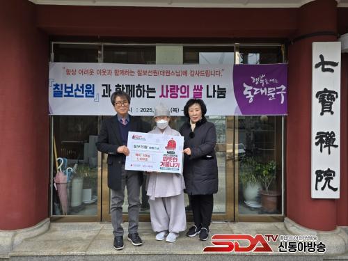 À̳¯ ÁøÇàµÈ ±âŹ½Ä¿¡´Â Á¤ÀÏ¿µ ´ä½Ê¸®2µ¿Àå, Ä¥º¸¼±¿ø ´ë¿ø½º´Ô, ½Åº¹ÀÚ ¼¿ï½ÃÀÇ¿øÀÌ Âü¼®Çß´Ù. ±âŹµÈ ¹é¹Ì´Â µ¿Áֹμ¾ÅÍ(Àü³ó1¡¤2µ¿, ´ä½Ê¸®2µ¿ Àå¾È1¡¤2µ¿)¸¦ ÅëÇØ Àú¼Òµæ Ãë¾à°èÃþ¿¡°Ô Àü´ÞµÉ ¿¹Á¤ÀÌ´Ù.