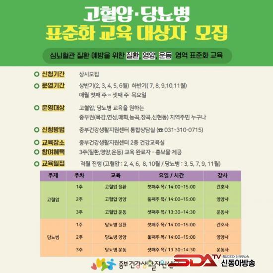 ±³À° ³»¿ëÀº °íÇ÷°ú ´ç´¢º´ÀÇ Áúȯ ÀÌÇØ¸¦ ºñ·ÔÇØ ¿µ¾ç °ü¸® ¹× ¿îµ¿¹ý µîÀ¸·Î ±¸¼ºµÇ¸ç, °£È£»ç, ¿µ¾ç»ç, ¿îµ¿»ç°¡ °»ç·Î Âü¿©ÇÑ´Ù. ±³À°Àº °Ý¿ù·Î ÁøÇàµÇ¸ç °íÇ÷¾ÐÀº 2¿ùºÎÅÍ 10¿ù±îÁö ¦¼ö ´Þ¿¡, ´ç´¢º´Àº 3¿ùºÎÅÍ 11¿ù±îÁö Ȧ¼ö ´Þ¿¡ ÁøÇàµÈ´Ù. ¸Å¿ù 3ÁÖ °úÁ¤ ¼ö·áÀÚ¿¡°Ô °Ç°È«º¸¹°ÀÌ Á¦°øµÇ¸ç, ½ÉÈ °ÁÂÀÎ ¡®°Ç°»ýȰ½Çõ ÇÁ·Î±×·¥¡¯À¸·Î ¿¬°èµÈ´Ù.