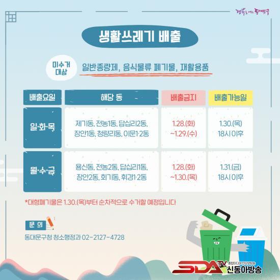 »ýȰºÒÆíÀ» ÁÙÀ̱â À§ÇØ Ã»¼Ò´ëÃ¥µµ ²Ä²ÄÇÏ°Ô ¸¶·ÃÇß´Ù. ¿¬ÈÞµ¿¾È û¼Ò´ëÃ¥¹ÝÀ» º°µµ·Î Æí¼ºÇÏ¿© ºÒ¹ý Æó±â¹° ´Ü¼Ó, û¼Ò ¹Î¿øÀ» ó¸®ÇÑ´Ù. û¼Ò´ëÇà¾÷üÀÇ ÈÞ¹«·Î 28ÀϺÎÅÍ 29ÀϱîÁö »ýȰ ¾²·¹±â¸¦ ¼ö°ÅÇÏÁö ¾ÊÀ¸¹Ç·Î ¿¬ÈÞ Àü ÁýÁß Ã»¼Ò¸¦ ½ÃÇàÇϰí, ¿¬ÈÞ ÀÌÈÄ 30ÀÏ ¾ß°£ºÎÅÍ ½×ÀÎ ¾²·¹±â¸¦ Àü·® ¼ö°ÅÇÏ°í ´ëû¼Ò¸¦ ½Ç½ÃÇÑ´Ù.