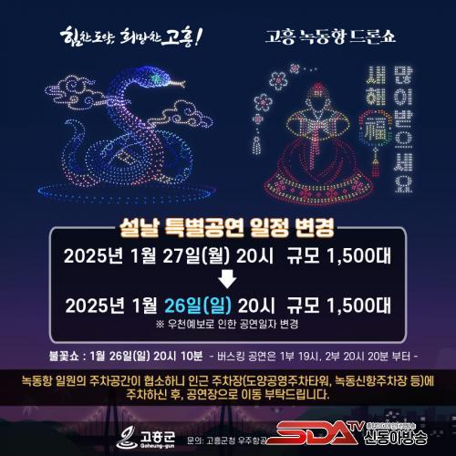±º °ü°èÀÚ´Â ¡°¿øÈ°ÇÑ Çà»ç ÁøÇà°ú ¾ÈÀüÇÑ °ø¿¬À» À§ÇØ ÀÏÁ¤À» º¯°æÇÑ °ÍÀÌ´Ï, °ü¶÷°´ ¿©·¯ºÐÀÇ ³ÐÀº ¾çÇØ¸¦ ºÎʵ台´Ù¡±¸ç, ¡°µå·Ð¼î ÀÏÁ¤ÀÌ º¯°æµÇ¸é ³ìµ¿Ç× µå·Ð¼î ȨÆäÀÌÁö(http://nokdongdrone.co.kr)³ª °íÈﱺ ´ëÇ¥ ´©¸®Áý(https://www.goheung.go.kr)¿¡ °øÁöÇÒ ¿¹Á¤ÀÌ´Ï, °ü¶÷ Àü ¹Ì¸® ÀÏÁ¤À» È®ÀÎÇØ ÁÖ½Ã±æ ¹Ù¶õ´Ù¡±°í ´çºÎÇß´Ù.