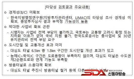 ÀÎõ½Ã´Â Àå±â°èȹÀ¸·Î °ËÅäÇÑ ´ë½Éµµ ÅͳÎÀÇ »ç¾÷ÃßÁø Àü¹Ý¿¡ °üÇÑ »çÇ×À» ¸é¹ÐÈ÷ ºÐ¼®Çϱâ À§ÇØ Àü¹®±â°üÀÎ Çѱ¹µµ·ÎÇÐȸ¿¡ Ÿ´ç¼º °ËÅ並 ÀÇ·ÚÇß´Ù. °ËÅä °á°ú¿¡ µû¸£¸é ´ë½Éµµ ÅͳÎÀº ¡ã°æÁ¦¼º ºÎÁ·(B/C ¹ÌÈ®º¸) ¡ã¸·´ëÇÑ »ç¾÷ºñ È®º¸ÀÇ ¾î·Á¿ò ¡ãµµ½Ã ´ÜÀý ¹× °³Åë°³¼± È¿°úÀÇ ¹Ìºñ ¡ã¹æÀ½ÅͳηΠ¼ÒÀ½ ´ëÃ¥ÀÌ ÀÌ¹Ì È®º¸µÈ Á¡ µîÀ» ÀÌÀ¯·Î »ç¾÷ÃßÁøÀÇ Å¸´ç¼ºÀÌ ³·´Ù°í Æò°¡µÆ´Ù. ¶ÇÇÑ, ÀÌÁßÅõÀÚ·Î ÀÎÇÑ »ç¾÷ºñ ³¶ºñ ¿ì·Áµµ Á¦±âµÆ´Ù.