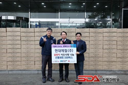 À̳¯ Àü´Þ½Ä¿¡¼ Çö´ëÁ¦Ã¶ ÀÎõ°øÀåÀº À°°³Àå, »ç°ñ°õÅÁ, Àüº¹Á×, ¶±±¹¶±, ¶ó¸é, Ä«³î¶óÀ¯ µî ¾î·Á¿î ÀÌ¿ô¿¡°Ô ²À ÇÊ¿äÇÑ ¹°Ç°À¸·Î ±¸¼ºµÈ ¼±¹° »óÀÚ 330°³¸¦ Áö¿øÇß´Ù. ±¸´Â Áö¿ø¹ÞÀº ¼±¹° »óÀÚ¸¦ °¢ µ¿ Àú¼Òµæ ÁֹΠ¹× °æ·Î´ç¿¡ Àü´ÞÇß´Ù.