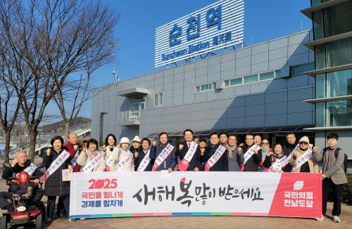 À̳¯ Çà»ç¿¡´Â ±èÈÁø Àü³²µµ´çÀ§¿øÀå, ±èÇü¼® ¼øÃµ±¤¾ç°î¼º±¸·Ê°© ´çÇùÀ§¿øÀåÀ» ºñ·ÔÇØ ¼øÃµ½Ã ´ç¿ø µî 30¿©¸íÀÌ Âü¼®ÇØ ¡®±¹¹ÎÀ» ÈûÂ÷°Ô, °æÁ¦¸¦ Èû³ª°Ô¡¯¶ó´Â ½½·Î°ÇÀÌ ´ã±ä ¾î±ú¶ì¸¦ Âø¿ëÇÏ°í ±Í¼º°´µé¿¡°Ô »õÇØ ´ö´ãÀ» °Ç³×¸ç ´ç Á¤Ã¥ È«º¸¹°À» Àü´ÞÇß´Ù.