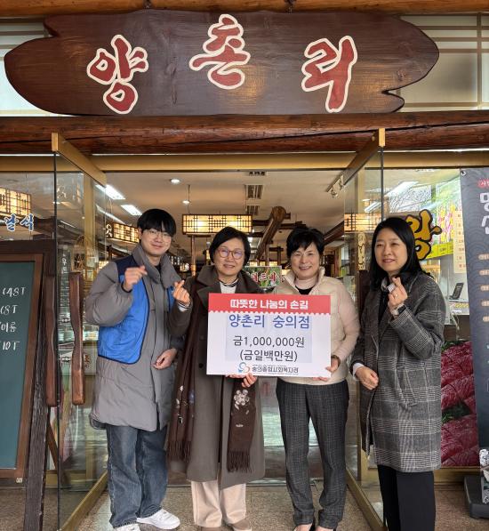 °¢ ÈÄ¿øÃ³¿¡¼´Â ¡°¸íÀýÀ» ¾ÕµÎ°í ¾î·Á¿î ÀÌ¿ôµé¿¡°Ô µû¶æÇÑ ³ª´®À» ÀüÇÏ°Ô µÇ¾î ¶æ±í°Ô »ý°¢ÇÑ´Ù.¡±¶ó¸ç, ¡°¾ÕÀ¸·Îµµ Áö¿ª »çȸ ¹ßÀüÀ» À§ÇÑ »çȸ°øÇå Ȱµ¿À» Áö¼ÓÇØ¼ ÆîÄ¡°Ú´Ù.¡±¶ó°í ÀüÇß´Ù.