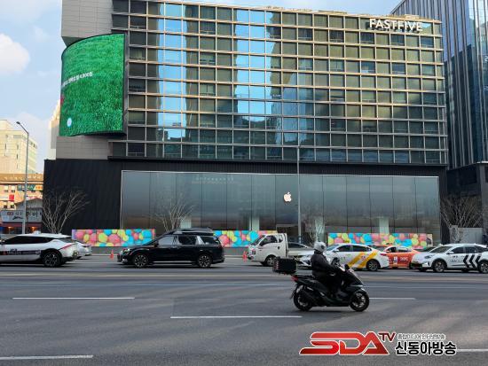 °¡Àå ¸ÕÀú ´«±æÀ» »ç·ÎÀâ´Â °÷Àº °³²¿ª 11¹ø°ú 12¹ø Ãⱸ »çÀÌÀÇ °³²½ºÄù¾î ±¤ÀåÀÇ º¯½ÅÀÌ´Ù. À̰÷¿¡ ¡®°¡½¿ ¶Ù°í ¼³·¹´Â °³²¿ª¡¯À̶ó´Â ÄܼÁÆ®¸¦ ´ãÀº »ó¡Á¶Çü¹°À» ¼³Ä¡ÇØ ÀÌ»ö Æ÷Åä ½ºÆÌÀ» ¸¸µé¾ú´Ù. ¡®I¢½GANGNAM style¡± ±ÛÀÚ·Î ±¸¼ºµÈ 3.8m ³ôÀÌÀÇ Á¶Çü¹°À» ¼¼¿ì°í, µÎ±Ù°Å¸®´Â ½ÉÀåÀ» ÇÏÆ®·Î Ç¥ÇöÇß´Ù. ¹Ù´Ú¿¡´Â ´ÙÀ̳ª¹ÍÇÑ LED Á¶¸íÀ» ±ò¾Æ ȸ»öºû ±¤Àå¿¡ »ý¸í·ÂÀ» ºÒ¾î³Ö¾ú´Ù.