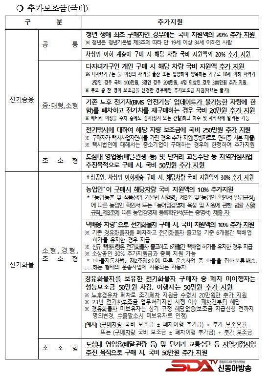 ƯÈ÷ ÀÎõ½Ã¹Î Áß ´ÙÀÚ³à °¡±¸, û³â ¹× »ý¾ÖÃÖÃÊ Â÷·® ±¸¸ÅÀÚ, Â÷»óÀ§°èÃþ, Åýà ±¸¸ÅÀÚ¸¦ ´ë»óÀ¸·Î Àü±âÀÚµ¿Â÷(½Â¿ëÂ÷) ±¸¸Å ½Ã ÃÖ´ë 100¸¸ ¿øÀÇ Ãß°¡Áö¿ø±ÝÀ» Áö¿øÇÑ´Ù. ¾Æ¿ï·¯, ¼Ò»ó°øÀÎ, Â÷»óÀ§°èÃþ, ³ó¾÷ÀÎÀÌ Àü±âȹ°Â÷¸¦ ±¸¸ÅÇÒ °æ¿ì¿¡µµ 20¸¸ ¿øÀÇ Ãß°¡Áö¿ø±ÝÀ» ¹ÞÀ» ¼ö ÀÖ´Ù.