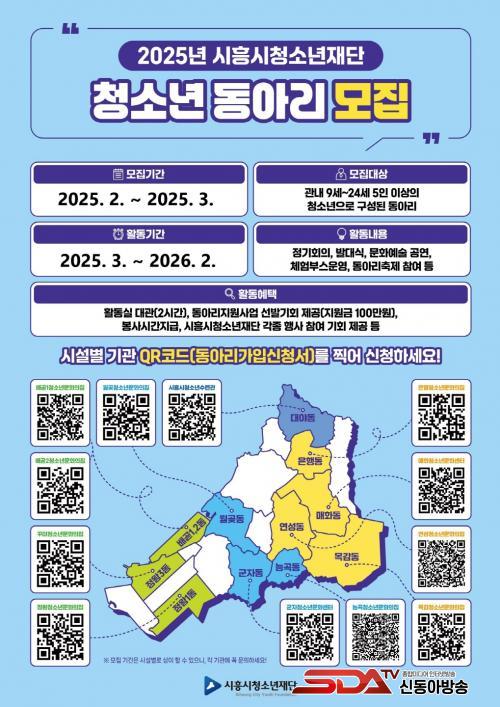 ¶ÇÇÑ, À̹ø¿¡ ¼±¹ßµÈ û¼Ò³âµ¿¾Æ¸®´Â 2025³â ½ÃÈï½Ãû¼Ò³âµ¿¾Æ¸®Áö¿ø»ç¾÷¿¡ ¼±¹ßµÇ´Â ±âȸ°¡ ÁÖ¾îÁö°í ½ÃÈï½Ãû¼Ò³âÀç´Ü ³» ´Ù¾çÇÑ Çà»ç¿Í Ȱµ¿¿¡ Âü¿©ÇÒ ¼ö ÀÖ´Ù.