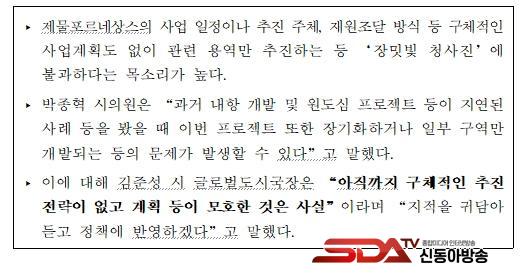 < ±¸Ã¼ÀûÀÎ »ç¾÷°èȹ ¾øÀÌ ¿ë¿ª¸¸ ÃßÁøÇß´Ù´Â ³»¿ë °ü·Ã >
