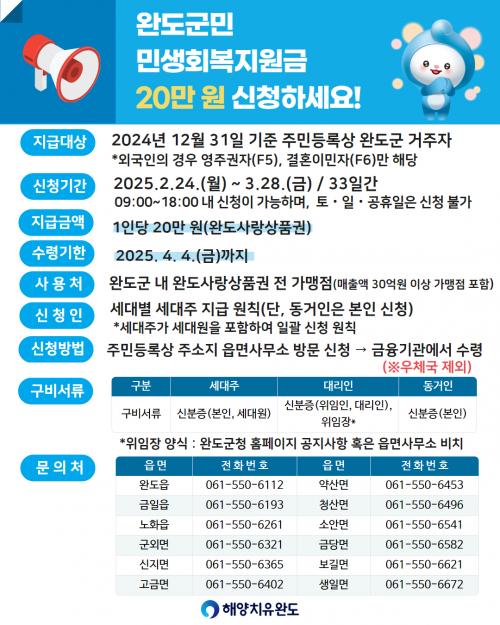 ¹Î»ýȸº¹Áö¿ø±Ý ½Åû ´ë»óÀº 2024³â 12¿ù 31ÀÏ ±âÁØ Áֹεî·Ï»ó ¿Ïµµ±º¿¡ ÁÖ¼Ò¸¦ µÐ ±º¹ÎÀ̰í, ¿Ü±¹ÀÎÀÇ °æ¿ì ¿µÁÖ±ÇÀÚ(F5), °áÈ¥ À̹ÎÀÚ(F6)¸¸ ÇØ´çµÈ´Ù.