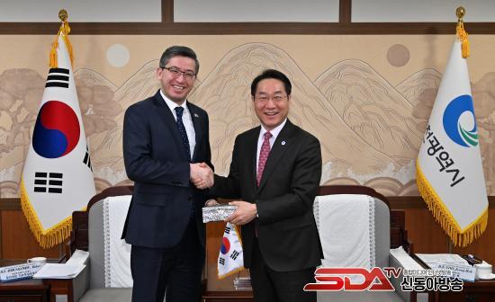 »çÁø=À¯Á¤º¹ ÀÎõ±¤¿ª½ÃÀåÀÌ 24ÀÏ ½Ãû ´ëÁ¢°ß½Ç¿¡¼­ ¾Ë¸®½¦¸£ ¾ÐµÎ»ì·Î¸ðÇÁ(Alisher ABDUSALOMOV) ÁÖÇÑ¿ìÁŰ½ºÅº ´ë»ç¸¦ Á¢°ßÇÏ°í ±â³äǰÀ» ±³È¯Çϰí ÀÖ´Ù.