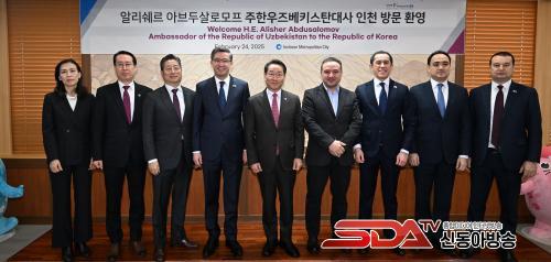 »çÁø=À¯Á¤º¹ ÀÎõ±¤¿ª½ÃÀåÀÌ 24ÀÏ ½Ãû ´ëÁ¢°ß½Ç¿¡¼­ ¾Ë¸®½¦¸£ ¾ÐµÎ»ì·Î¸ðÇÁ(Alisher ABDUSALOMOV) ÁÖÇÑ¿ìÁŰ½ºÅº ´ë»ç(¿ÞÂÊ ³×¹øÂ°)¸¦ Á¢°ßÇÏ°í ±â³äÃÔ¿µÀ» Çϰí ÀÖ´Ù.