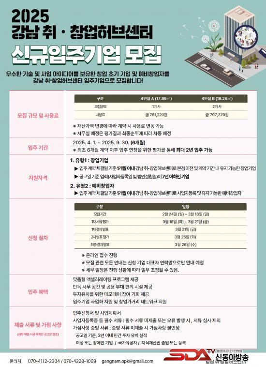 ÀÌ·¯ÇÑ °æÀï·ÂÀ» Áö´Ñ °³² Ã롤â¾÷Çãºê¼¾ÅÍ´Â 2¿ù 24ÀϺÎÅÍ ½Å±Ô ÀÔÁÖ±â¾÷ 3°³»ç¸¦ ¸ðÁýÇÑ´Ù. ÀÔÁÖ ±â¾÷¿¡´Â 4ÀÎ½Ç ±âÁØ ¿ù 79¸¸ ¿ø(6°³¿ù ±âÁØ)ÀÇ »ç¿ë·á°¡ Àû¿ëµÇ¸ç, ¿¬ÀåÆò°¡¸¦ ÅëÇØ ÃÖ´ë 2³â±îÁö ÀÔÁÖ°¡ °¡´ÉÇÏ´Ù. Áö¿ø ´ë»óÀº ¾÷·Â 7³â ÀÌÇÏ ±â¾÷À¸·Î, ÀÔÁÖ °è¾à ü°áÀÏ ±âÁØ 1°³¿ù À̳» ¼¾ÅÍ·Î º»Á¡À» ÀÌÀüÇÒ ¼ö ÀÖ´Â ±â¾÷, °³² Ã롤â¾÷Çãºê¼¾ÅÍ ³» »ç¾÷ÀÚ µî·ÏÀÌ °¡´ÉÇÑ ¿¹ºñ â¾÷ÀÚ´Ù. ÀÚ¼¼ÇÑ »çÇ×Àº °³² Ã롤â¾÷Çãºê¼¾ÅÍ È¨ÆäÀÌÁö(www.gangnam-jobnstartup.com)¿¡¼È®ÀÎÇÒ ¼ö ÀÖ´Ù