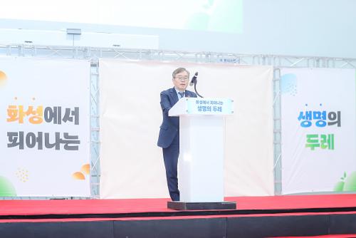 [½Åµ¿¾Æ¹æ¼Û=ÀÌÀçö±âÀÚ] Á¶½Â¹® È­¼ºÆ¯·Ê½Ã Á¦2ºÎ½ÃÀåÀÌ 28ÀÏ È­¼º½Ã ³²¾çÀ¾ ȰÃʸ®¿¡ À§Ä¡ÇÑ µÎ·¹»ýÇùÈ­¼º¹°·ù¼¾ÅÍ Áذø½Ä¿¡ Âü¼®Çß´Ù.