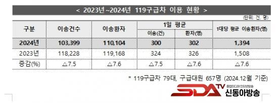 - ÀÎõ¼Ò¹æº»ºÎ, 2024³â 119±¸±ÞÂ÷ ÀÌ¿ëÇöȲ ºÐ¼® °á°ú ¹ßÇ¥...11¸¸ ¿© ¸í À̼Û
