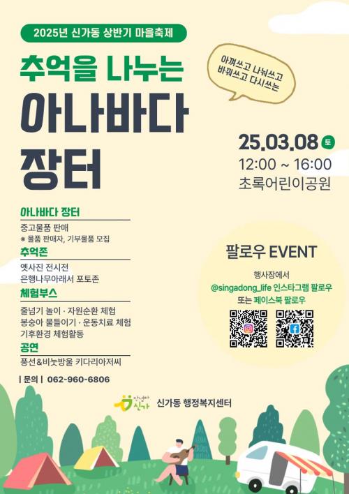 ¾Æ³ª¹Ù´Ù ÀåÅÍ´Â ÁÖ¹ÎÂü¿©¿¹»ê»ç¾÷À¸·Î ¼±Á¤µÈ ¸¶À» ÃàÁ¦ÀÇ ÀÏȯÀ¸·Î, ¡®¾Æ²¸ ¾²°í ³ª´²¾²°í, ¹Ù²ã¾²°í, ´Ù½Ã ¾²ÀÚ¡¯´Â Àǹ̸¦ ´ã¾Æ ½Å°¡µ¿ ÁֹεéÀÌ Âü¿©ÇØ »ýȰ¿ëǰ, ÀÇ·ù, µµ¼­ µîÀ» »ç°íÆÈ¸ç ÀÚ¿ø ¼øÈ¯ÀÇ °¡Ä¡¸¦ ½ÇÇöÇÏ´Â ÀÚ¸®´Ù.