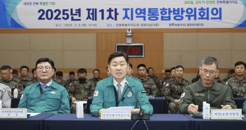 À̳¯ ȸÀÇ´Â ÅëÇÕ¹æÀ§ÇùÀÇȸ ÀÇÀåÀÎ ±è°ü¿µ µµÁö»ç°¡ ÁÖÀçÇßÀ¸¸ç, ÀüºÏÀÚÄ¡µµÀÇȸ ÀÇÀå, 35»ç´ÜÀå, °æÂûûÀå, ¼Ò¹æº»ºÎÀå, ½Ã¡¤±º ´ã´ç°úÀå, ±¹°¡Áß¿ä½Ã¼³, À¯°ü±â°ü µî ÅëÇÕ¹æÀ§À§¿ø ¹× °ü°èÀÚ 160¿© ¸íÀÌ Âü¼®Çß´Ù.