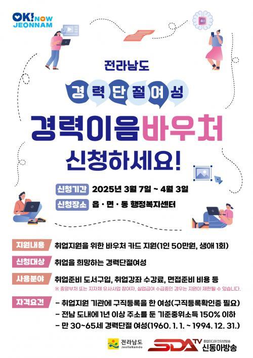 Áö¿ø ´ë»óÀº ½ÅûÀÏ ±âÁØ Àü¶ó³²µµ¿¡ 1³â ÀÌ»ó °ÅÁÖÇϸç, ¿©¼º»õ·ÎÀÏÇϱ⼾ÅÍ, °í¿ëº¹ÁöÇ÷¯½º¼¾ÅÍ µî Ãë¾÷ Áö¿ø ±â°ü¿¡ ±¸Á÷ µî·ÏÀ» ¿Ï·áÇÑ 30¼¼¿¡¼­ 65¼¼ ÀÌÇÏÀÇ °æ·Â ´ÜÀý ¿©¼ºÀÌ´Ù.