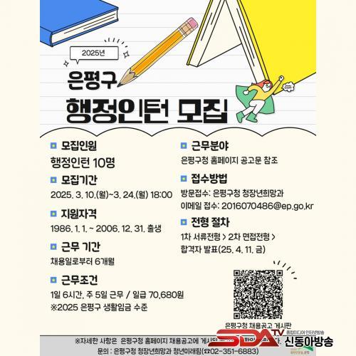 ¸ðÁý ´ë»óÀº ÀºÆò±¸¿¡ °ÅÁÖÇÏ´Â 19¼¼ºÎÅÍ 39¼¼ ¹ÌÃë¾÷ û³âÀÌ´Ù. ¼±¹ßµÈ ÇàÁ¤ ÀÎÅÏÀº ¿À´Â 5¿ùºÎÅÍ 10¿ù±îÁö 6°³¿ù°£ ÀºÆò¿ª»çÇÑ¿Á¹Ú¹°°ü, ÀºÆò¹®È¿¹¼úȸ°ü µîÀ» ºñ·ÔÇÑ 10°³ ±Ù¹«Ã³¿¡ ¹èÄ¡µÅ ÇàÁ¤ »ç¹«¸¦ ¼öÇàÇÑ´Ù.