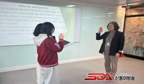 À̹ø ¼±¾ð½Ä¿¡´Â ȯ°æº¸Á¸¿¡ °ü½ÉÀÌ ÀÖ´Â Çлý 58¸íÀ¸·Î ±¸¼ºµÈ ȯ°æºÀ»ç´Ü°ú Áöµµ ±³»çµéÀÌ Âü¿©Çß´Ù. ȯ°æºÀ»ç´ÜÀº ź¼ÒÁ߸³°ú ÀÚ¿ø ÀçȰ¿ëÀÇ Á߿伺À» ¾Ë¸®°í, ±³³» ºÐ¸®¼ö°Å¿Í Çб³ ÁÖº¯ ȯ°æÁ¤È Ȱµ¿À» ÆîÃÄ È¯°æº¸Àü ÀǽÄÀ» °¡Á¤°ú Áö¿ª»çȸ·Î È®»êÇÒ °èȹÀÌ´Ù.