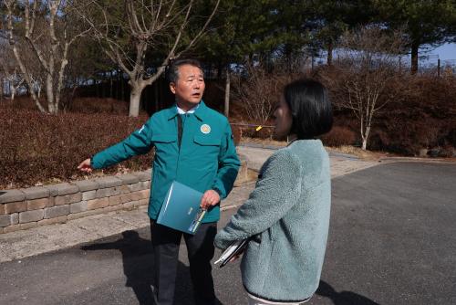 ÁÖ¿µÈ¯ ºÎ±º¼ö´Â °¢ »ç¾÷ÀåÀÇ ÁøÇàÇöȲÀ» Á÷Á¢ È®ÀÎÇϰí, ÇöÀåÀÇ ¹®Á¦Á¡À» ÆÄ¾ÇÇÏ¿© ½Å¼ÓÇÑ ´ëÃ¥À» ¸¶·ÃÇÒ °ÍÀ» Áö½ÃÇϰí, ƯÈ÷ ÁֹΠ»ýȰ°ú ¹ÐÁ¢ÇÑ »ç¾÷µé¿¡ ´ëÇØ¼´Â ¾ÈÀü¼º°ú ½ÇÈ¿¼ºÀ» ÃÖ¿ì¼±À¸·Î °í·ÁÇÒ °ÍÀ» °Á¶Çß´Ù.