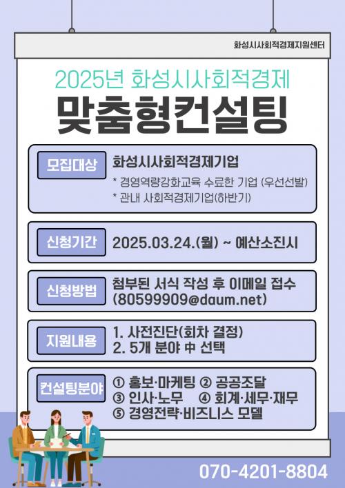 Áö¿ø ÀÚ°ÝÀº ¡®2025³â ȼº½Ã »çȸÀû°æÁ¦±â¾÷ °æ¿µ¿ª·®°È ±³À°¡¯À» ¼ö·áÇÑ È¼º½Ã »çȸÀû°æÁ¦±â¾÷À̸ç, ½Ã´Â ÄÁ¼³ÅÏÆ®¿ÍÀÇ »çÀü ÇùÀǸ¦ °ÅÃÄ ÄÁ¼³ÆÃ Âü¿© ±â¾÷À» ÃÖÁ¾ ¼±¹ßÇÒ ¿¹Á¤ÀÌ´Ù.