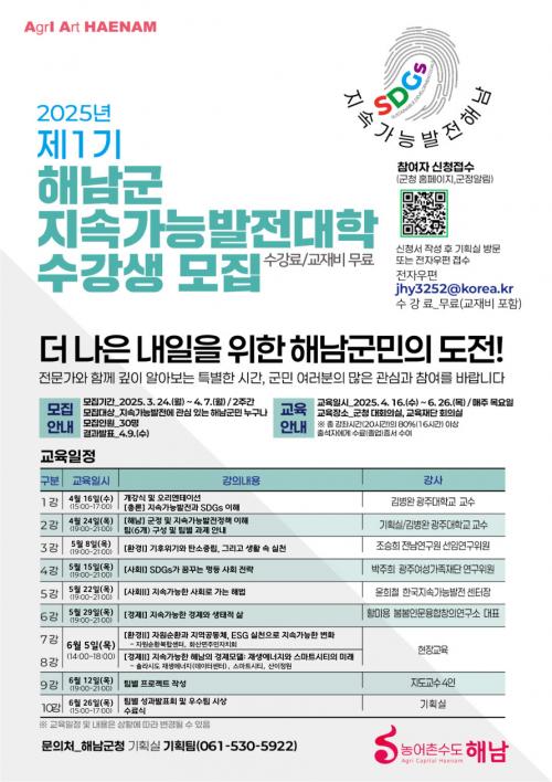 ¿ÃÇØ óÀ½ °³¼³µÇ´ÂÇØ³²±º Áö¼Ó°¡´É¹ßÀü´ëÇÐÀº Áö¼Ó°¡´É¹ßÀü±³À° ÇÁ·Î±×·¥À» ÅëÇØ Áö¿ªÈ°µ¿°¡¸¦ ¾ç¼ºÇϰí, ¼ö·áÀÚ °£ ³×Æ®¿öÅ©¸¦ Çü¼ºÇØ Áö¼Ó°¡´É¹ßÀü Á¤Ã¥À» Áö¿ª»çȸ¿¡ È®»êÇϱâ À§ÇØ ¸¶·ÃµÆ´Ù.