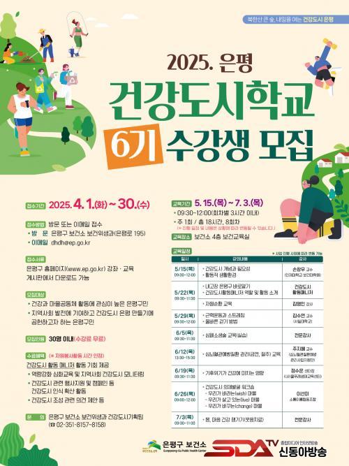 À̹ø ¡®6±â °Ç°µµ½ÃÇб³¡¯ ¼ö¾÷Àº 5¿ù 15ÀϺÎÅÍ 7¿ù 3ÀϱîÁö ÁÖ 1ȸ¾¿ ÃÑ 8ȸ·Î ÁøÇàÇÑ´Ù. ¼ö¾÷ ³»¿ëÀº °Ç°µµ½ÃÀÇ °³³ä¿¡ ´ëÇÑ ÀÌÇØ, ¿ì¸®µ¿³× °Ç°ÀÇÁ¦ ¹ß±¼, ±âÈÄÀ§±â°¡ °Ç°¿¡ ¹ÌÄ¡´Â ¿µÇâ, ½É³úÇ÷°üÁúȯ ¿¹¹æ°ü¸®, ½ÉÆó¼Ò»ý¼ú ±³À°, ±Ù·Â¿îµ¿°ú ½ºÆ®·¹Äª µî °Ç°ÇÑ »ýȰ ½À°ü Çü¼ºÀ» À§ÇÑ ´Ù¾çÇÑ Æ¯°À¸·Î ±¸¼ºµÆ´Ù.