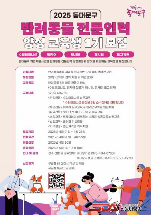 [½Åµ¿¾Æ¹æ¼Û µ¿´ë¹®±¸=À̽ŵ¿±âÀÚ] ¼­¿ï µ¿´ë¹®±¸´Â ¹Ý·Áµ¿¹°»ê¾÷ ºÐ¾ß¿¡ °ü½É ÀÖ´Â ±¸¹ÎµéÀ» À§ÇØ ¡®¹Ý·Áµ¿¹° Àü¹®Àη ¾ç¼º»ç¾÷¡¯ Âü¿©ÀÚ¸¦ 4¿ù 1ÀÏ(È­)ºÎÅÍ 25ÀÏ(±Ý)±îÁö ¸ðÁýÇÑ´Ù.