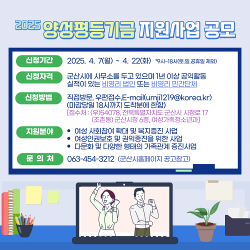 ½Åû ±â°£Àº 7ÀϺÎÅÍ 22ÀϱîÁöÀ̸ç, Áö¿ø ´ë»óÀº »ç¾÷ÃßÁøÀÌ ÀûÇÕÇÏ´Ù°í ÀÎÁ¤µÇ´Â ±º»ê½Ã ¼ÒÀç ºñ¿µ¸® ¹ýÀÎ ¶Ç´Â ºñ¿µ¸® ¹Î°£´ÜüÀÌ´Ù.