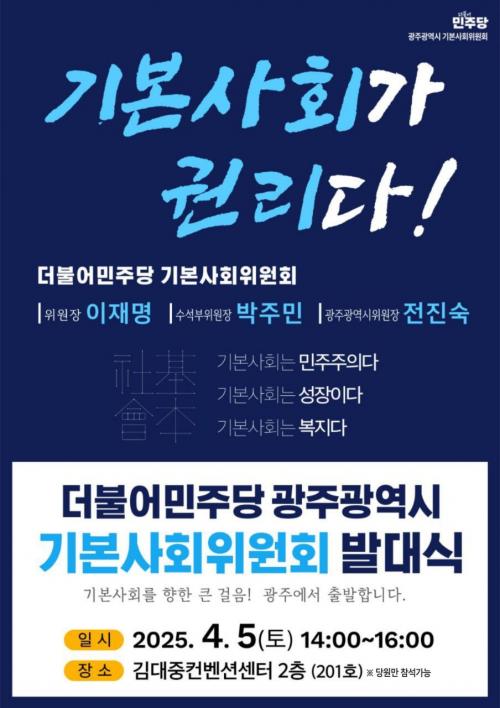 ½ÄÀü Çà»ç·Î ´õºÒ¾î¹ÎÁÖ´ç¿¡¼ ±âº»»çȸÀÇ ¹Ø±×¸²À» ±×¸° À庻ÀÎÀÌÀÚ, ÀÌÀç¸í ´ëÇ¥ÀÇ ¸àÅä·Î ²ÅÈ÷´Â ¹ÎÁÖ¿¬±¸¿øÀÇ ¡®ÀÌÇÑÁÖ ¿øÀ塯ÀÇ °Àǵµ ÁøÇàµÈ´Ù. ÀÌÇÑÁÖ ¿øÀåÀº ¡°±âº»»çȸ´Â ¹ÎÁÖÁÖÀÇ´Ù! ¼ºÀåÀÌ´Ù! º¹Áö´Ù!¡±¶ó´Â ÁÖÁ¦·Î ÇâÈÄ ¹ÎÁÖ´çÀÇ ±âº»»çȸ Á¤Ã¥Àû ¹æÇâ°ú ÁöÇâÁ¡¿¡ ´ëÇØ °ÀǸ¦ ÁøÇà ÇÒ ¿¹Á¤ÀÌ´Ù.