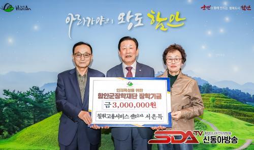 [½Åµ¿¾Æ¹æ¼Û °æ³²ÇÔ¾È=À̽ŵ¿±âÀÚ] ¼­Àºµæ Ä¥¿ø °í¿ë¼­ºñ½º ¼¾ÅÍÀåÀº Áö³­ 2ÀÏ ÇԾȱºÀåÇÐÀç´ÜÀ» ¹æ¹®ÇØ Áö¿ªÀÎÀç À°¼ºÀ» À§ÇÑ ÀåÇбâ±Ý 300¸¸ ¿øÀ» ±âŹÇß´Ù.