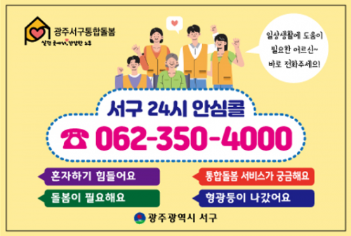 ¡®24½Ã ¾È½ÉÄÝ¡¯Àº ½º¸¶Æ®µ¹º½Á¤º¸¼¾ÅÍ ÀüÈ­(062-350-4000) ÇÑ ÅëÀ¸·Î Á¢¼öºÎÅÍ »ó´ã, 󸮱îÁö ¿ø½ºÅé ¼­ºñ½º°¡ °¡´ÉÇϸç Á¢¼öµÈ ³»¿ëÀº ´ã´çºÎ¼­¿Í µ¹º½Áö¿ø±â°ü, ¼Ò¹æ°ú °æÂû¼­ µî¿¡ ½Ç½Ã°£À¸·Î °øÀ¯ÇØ ½Å¼ÓÇÑ ´ëÀÀ°ú ¸ÂÃãÇü µ¹º½¼­ºñ½º¸¦ Áö¿øÇÑ´Ù.